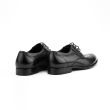 A pair of black solid oxfords, has regular styling, lace-up detail