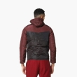 Maroon and Black colourblocked jacket, has a hooded, 2 pockets, zip closure, long sleeves, straight hem, and polyester lining.