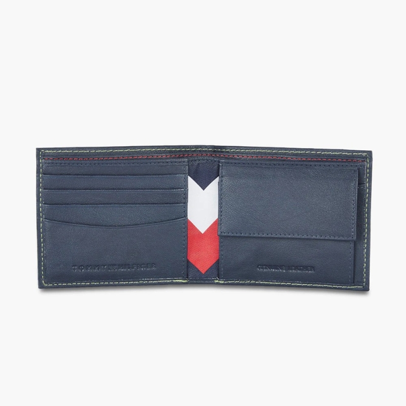 Navy Blue solid two fold wallet 2 main compartments 4 card holders, 2 slip pockets, has a flap coin pocket