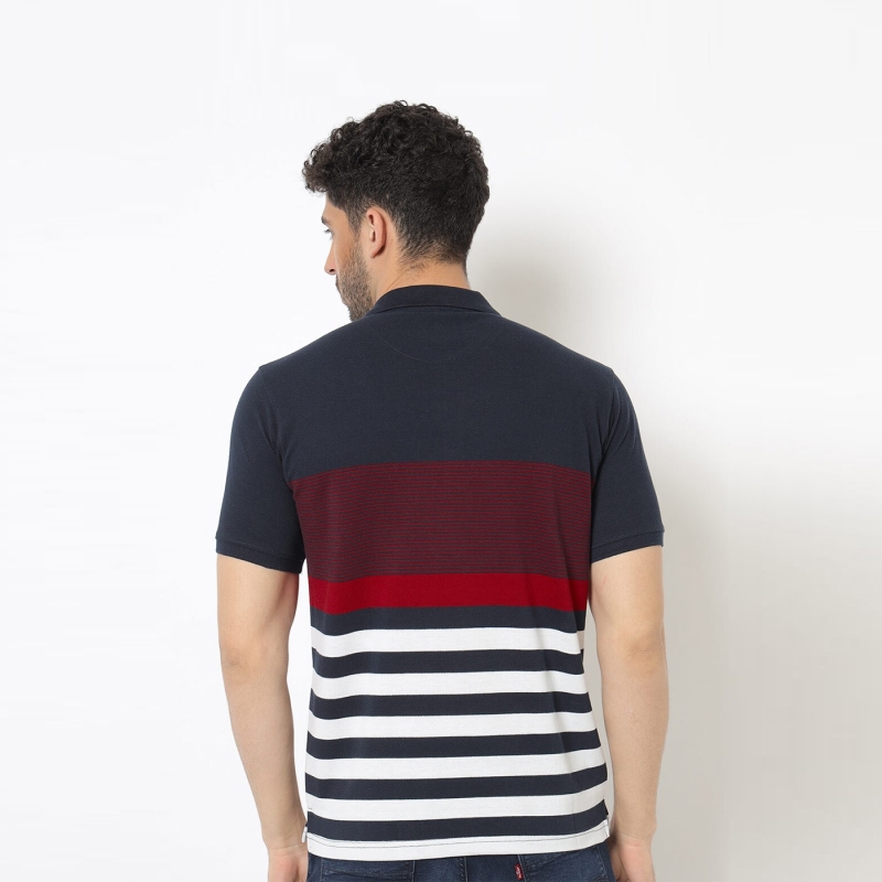 Navy Blue and Red-White Stripped Tshirt for men