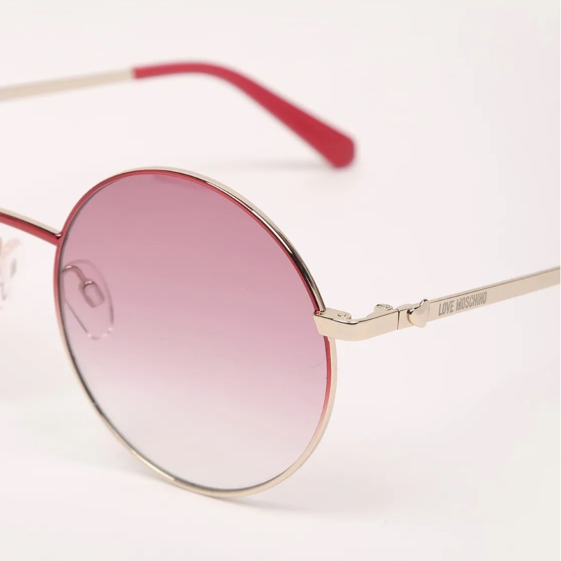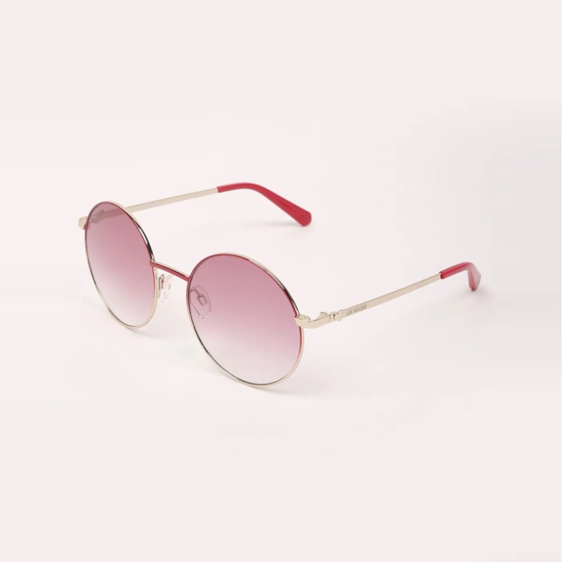 Lens Colour: pink Frame Colour: gold-toned Style: full rim Type: round sunglasses Frame Material: metal Features: uv protected lens Best suited for square face Comes in a Love Moschino hard case