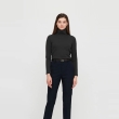 Black solid T-shirt, has a turtle neck, and long sleeves.