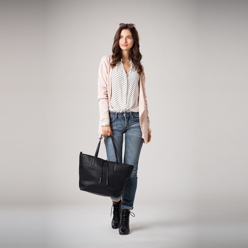 Black and white polka dot print Casual shirt, has a spread collar, button placket, long regular sleeves, curved hem