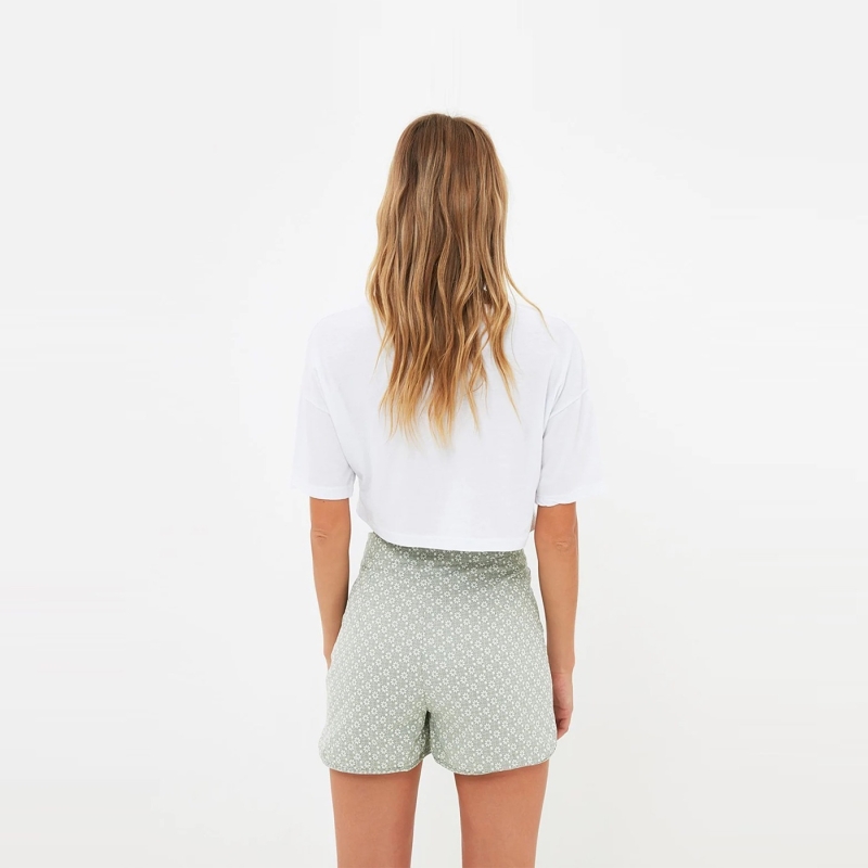 Green printed mid-rise regular shorts, has an elasticated waistband with drawstring closure.