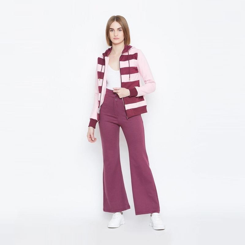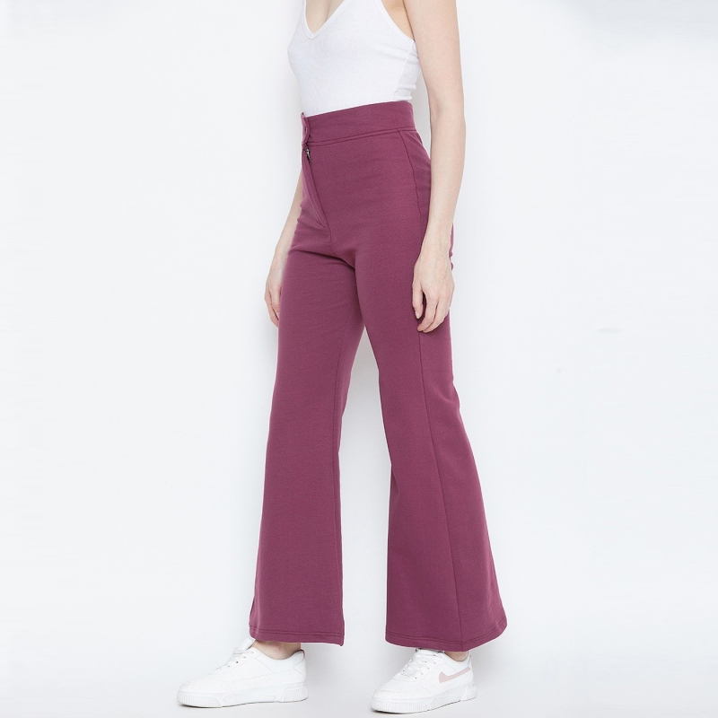 Women Pink High-Rise Flared Trousers